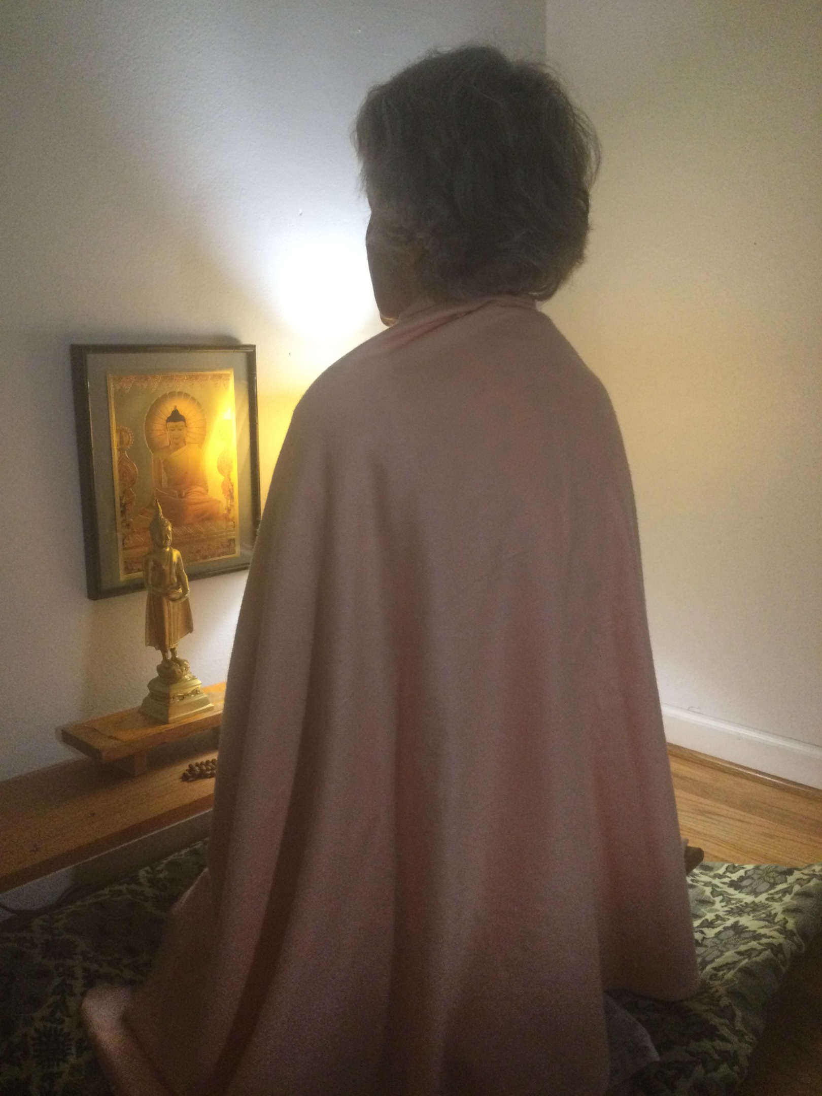 Once I decided that Buddhism was for me, and I went back to meditating, I began using the shawl in earnest. And so it has continued over the years. The shawl does help improve my practice. How in the world did Swamiji know that I would ultimately go back to meditating? In any case, I cherish this present most of all.